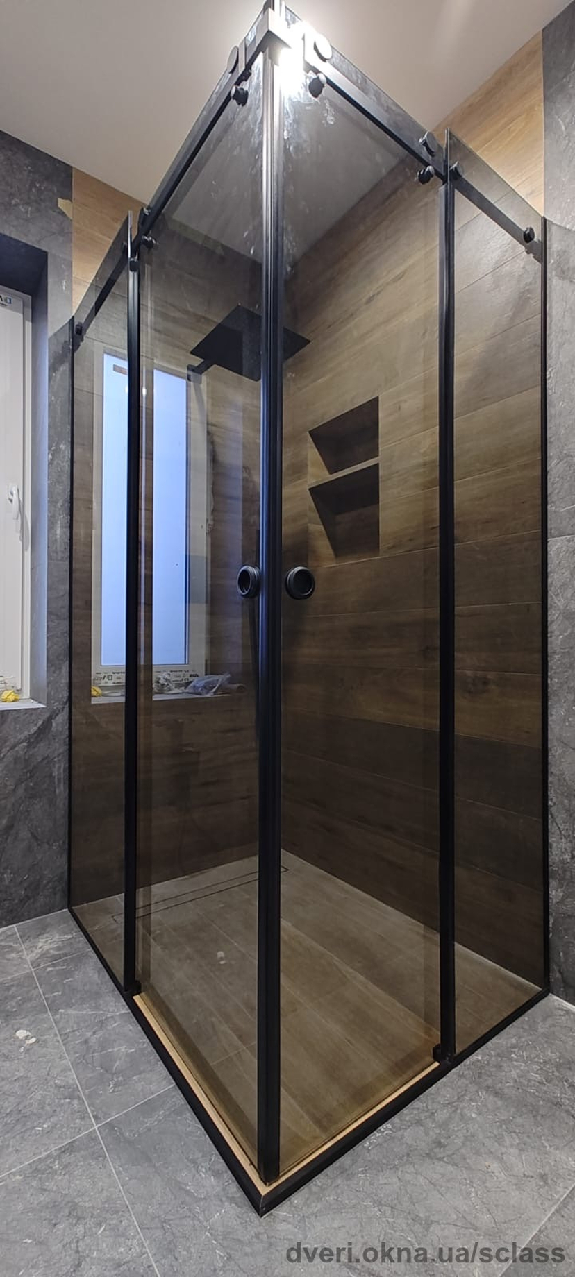 Реальний об’єкт SCLASS: кутова душова кабіна з графітового скла в Одесі.
