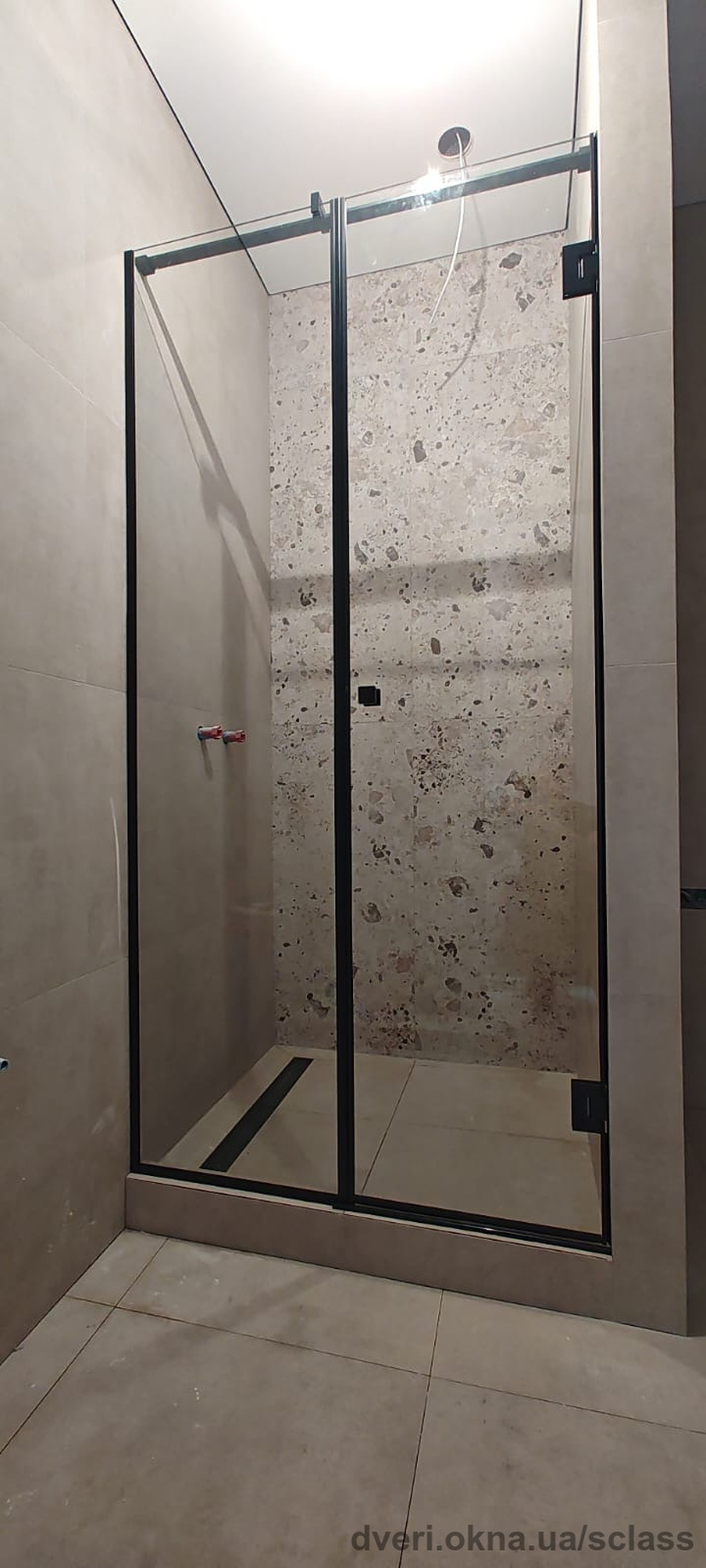 Реальний об’єкт SCLASS: душова кабіна в ніші з прозорого скла з розпашними дверима та хромованою фурнітурою в Одесі.
