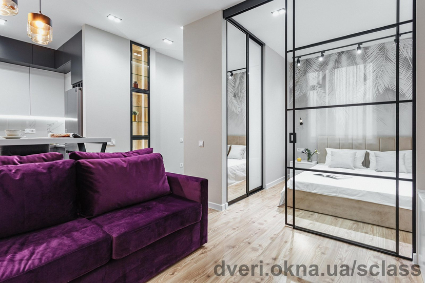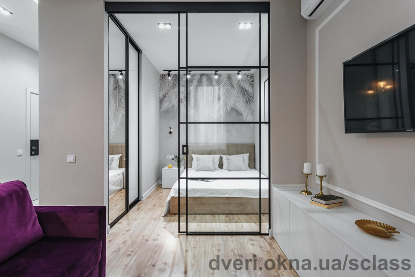 Реальний об’єкт SCLASS: розсувні скляні двері в спальню в стилі лофт в Одесі.